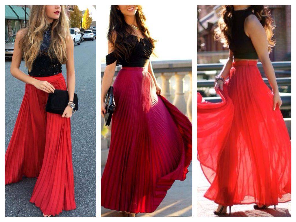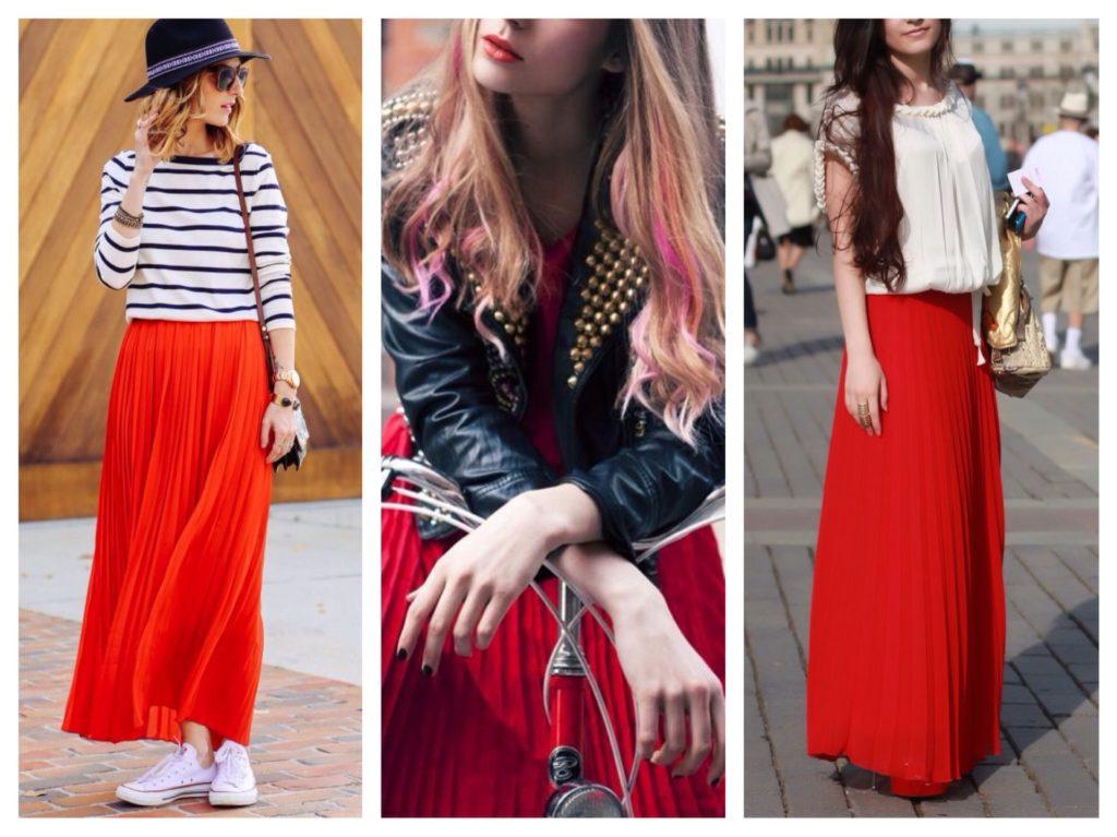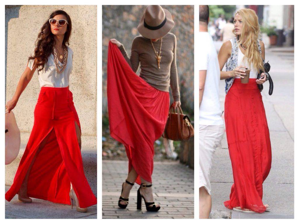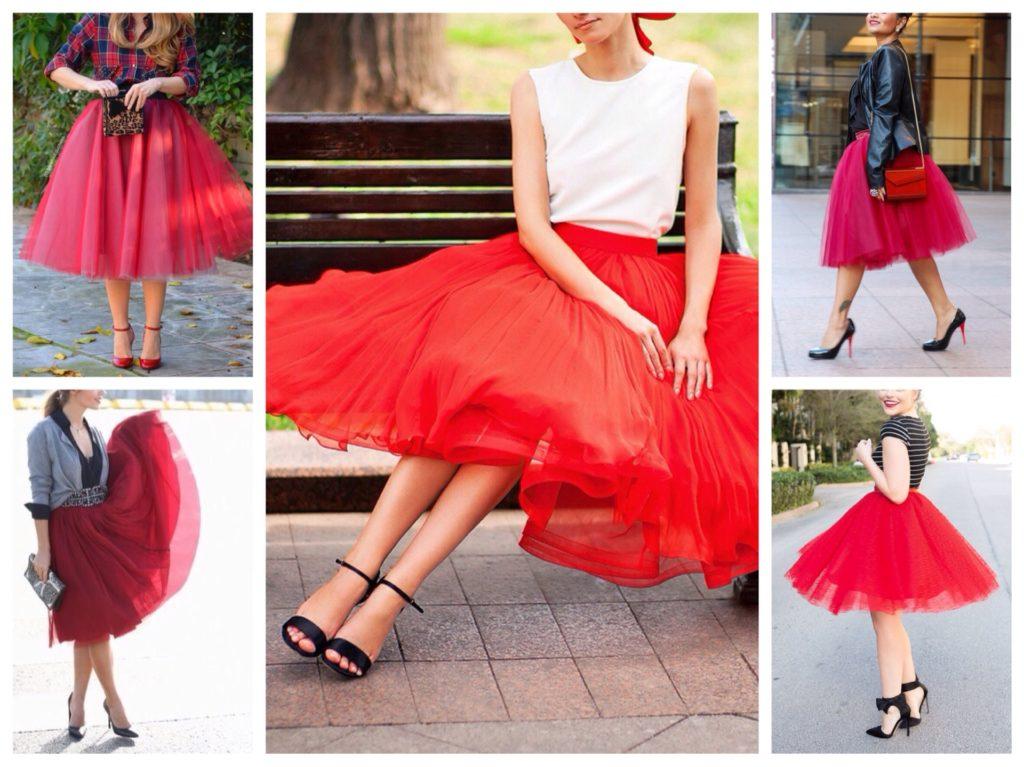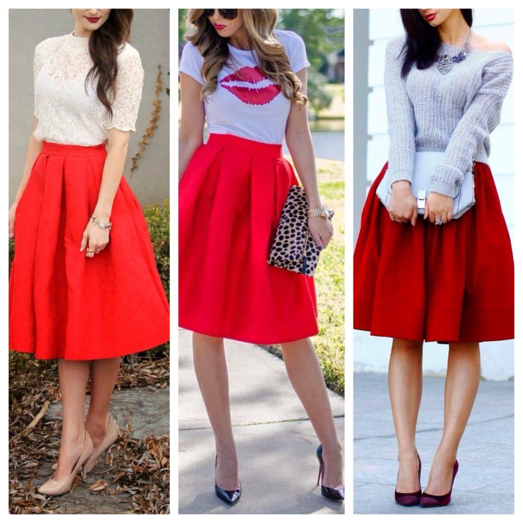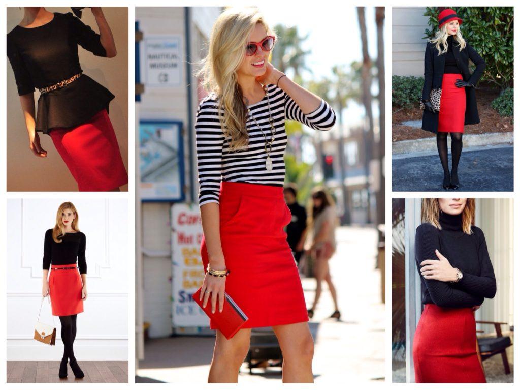 Дизайнеры советуют использовать комбинацию красной юбки с серыми аксессуарами;