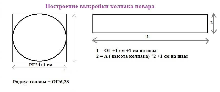 Построение выкройки колпака повара для ребёнка