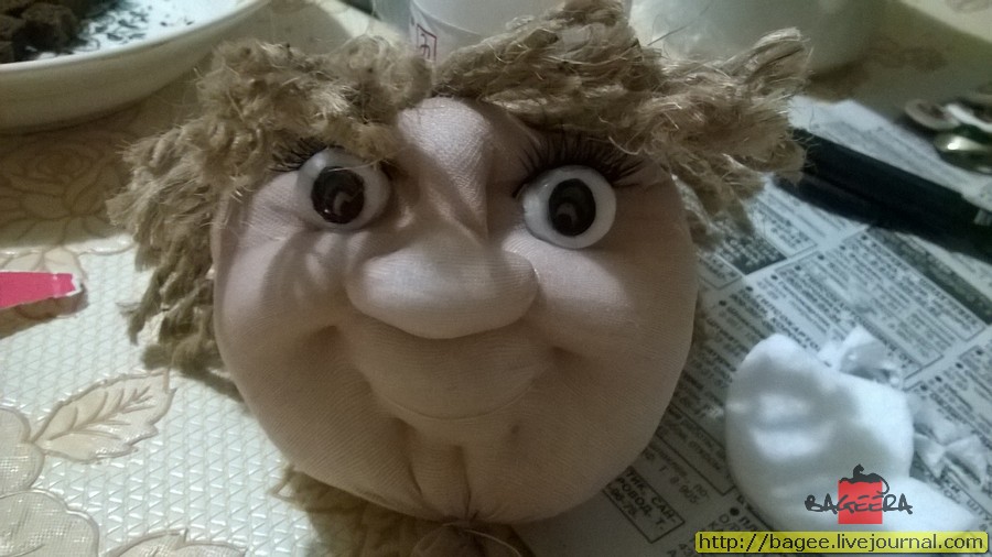 Чтобы скрыть некрасивости, делаем из пряжи парик. Но это потом, на конечной стадии.