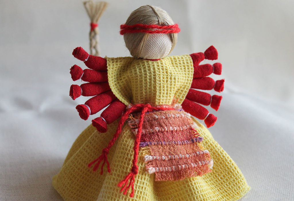 Не забудьте приготовить красную тесьму или нити и яркие ленты. Это обязательные атрибуты Десятиручки. Красный символизирует солнце, жизненную энергию и силу, а яркие оттенки лент, вплетенные в волосы ляльки, помогают поддерживать эту силу.