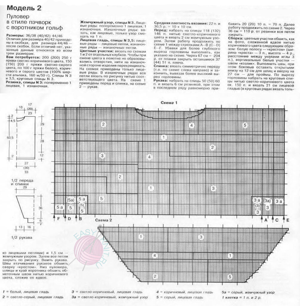 Для скоса рукава прибавить с обеих сторон в каждом 6-м ряду от начального ряда 12 x 1 п. изнаночной гладью и в следующем 4-м ряду 1 (1) 0 x 1 п. узором 4 = 78 (86) 92 п.