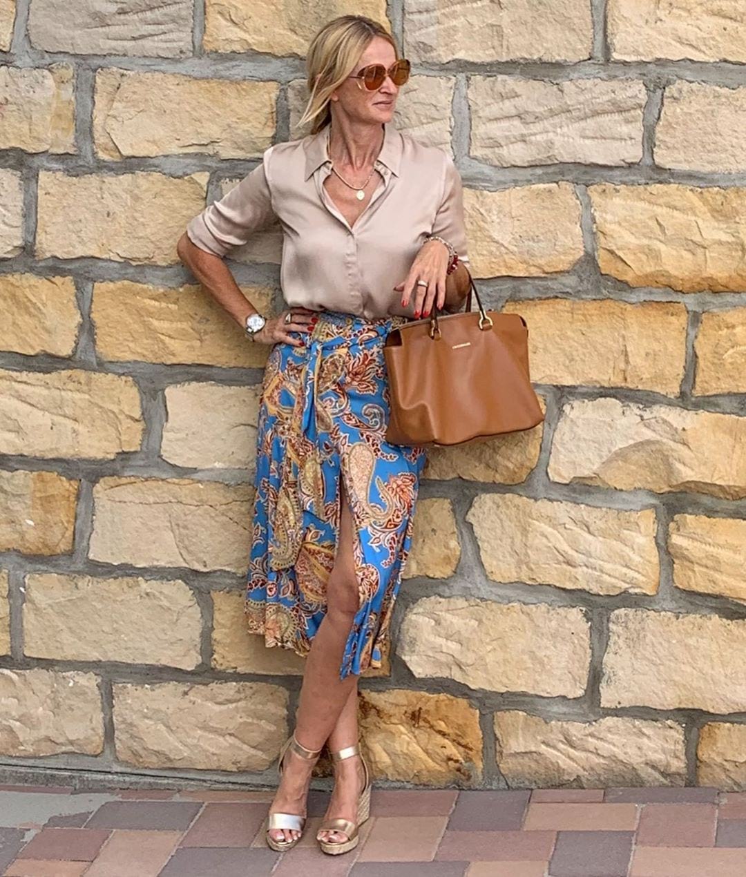 яркие аксессуары не имеют возрастных границ, давно не актуально дублировать цвет сумочки в обуви, лучше поддержать пестрый акцент маникюром, украшениями или палантином;
