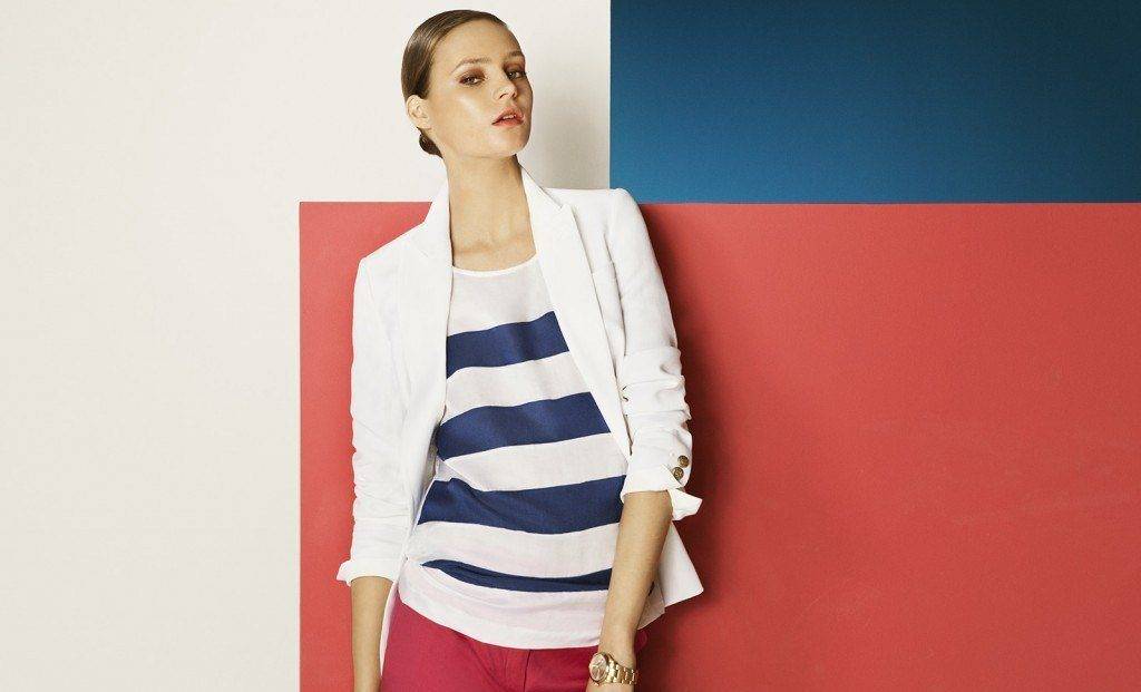 Знаковым элементом гардероба в морском стиле является и жакет, похожий на китель, темно-синего или красного цвета с золотистой фурнитурой. Такой жакет можно носить и с брюками прямого кроя, и с джинсами скинни, и с короткими юбками.