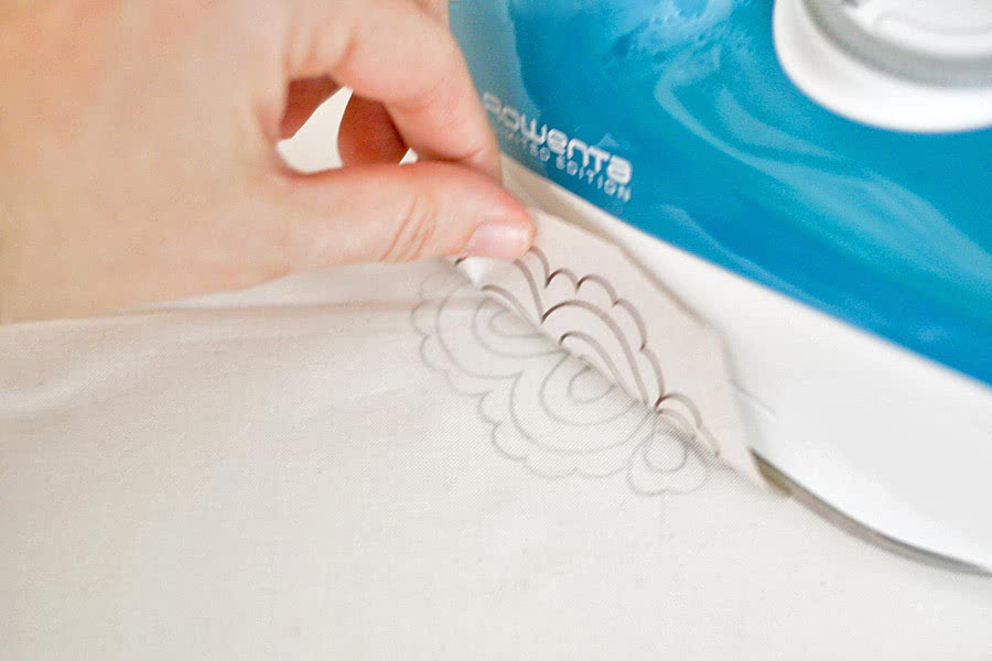 Чтобы сделать рисунок термопереводным маркером на ткани, его сначала нужно нанести на кальку. После этого бумагу прикладывают к ткани рисунком вниз и проглаживают горячим утюгом сверху несколько раз.