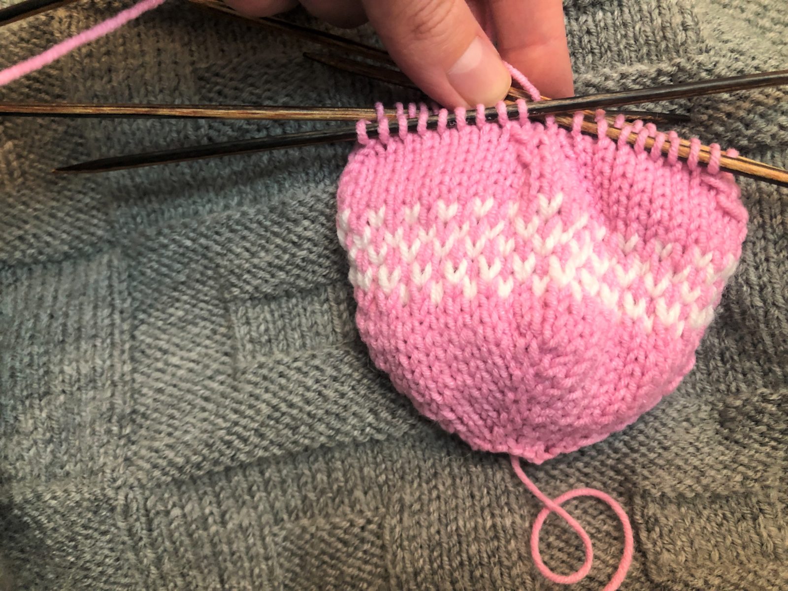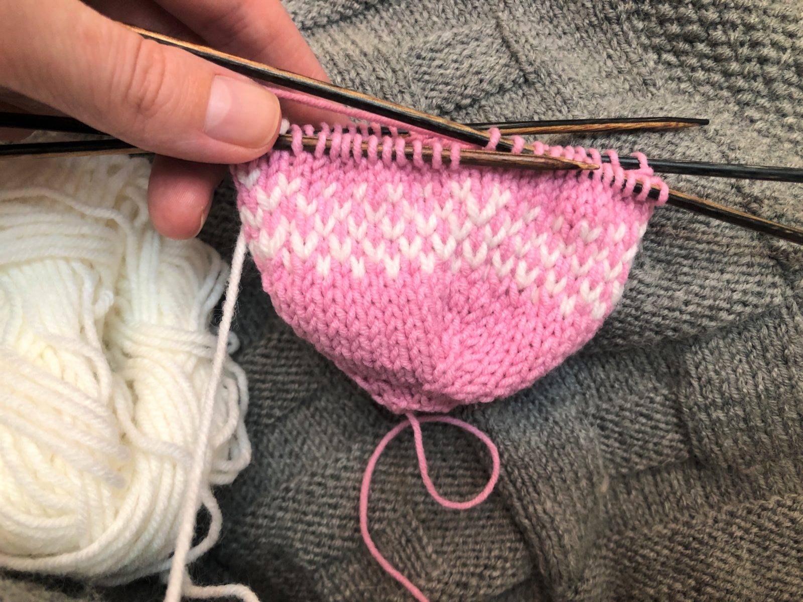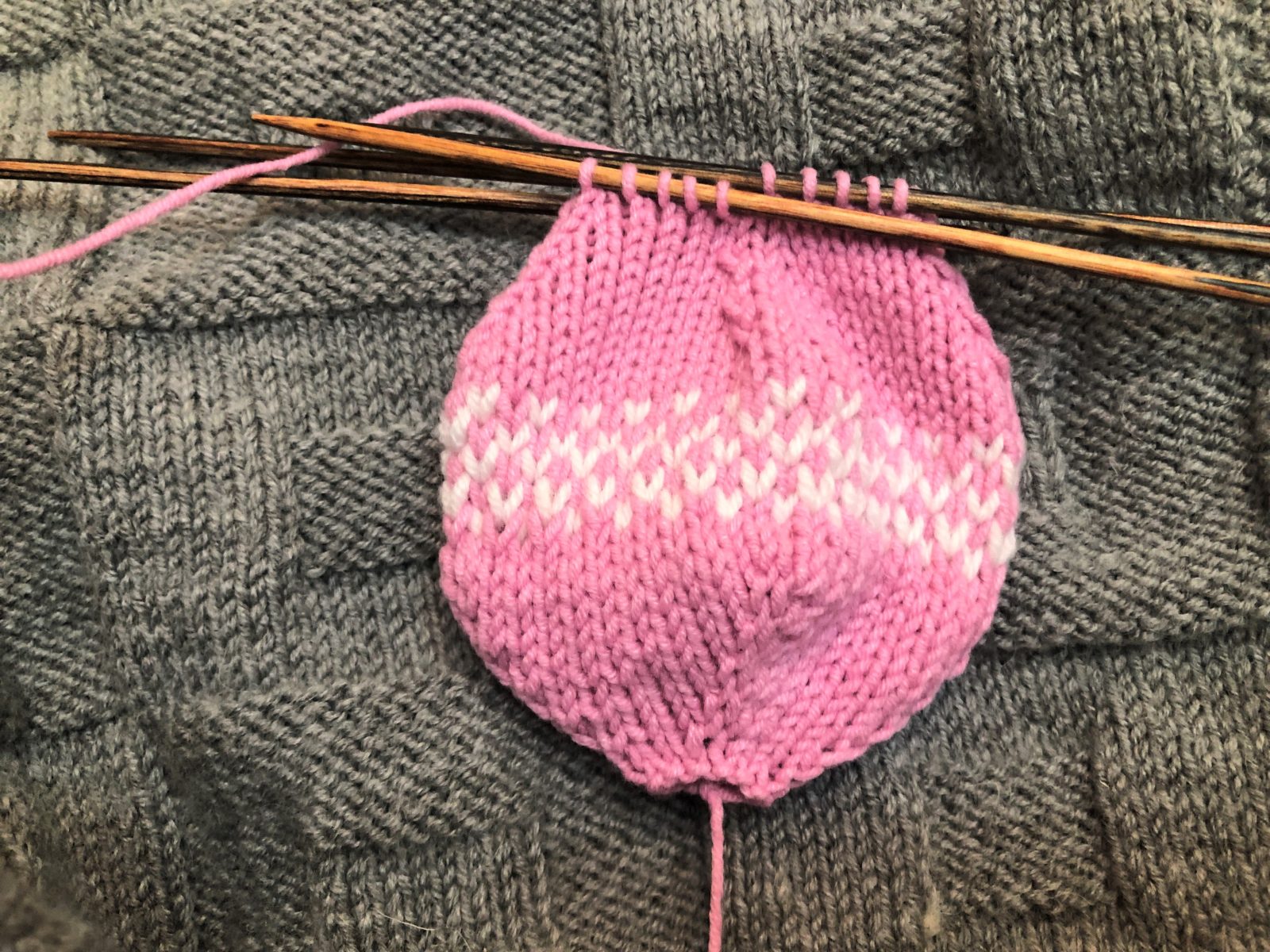 И провяжем еще 1 ряд с прибавками. Делаем их в каждую 7-ю петельку ряда. И этот ряд также провязываем ССН.