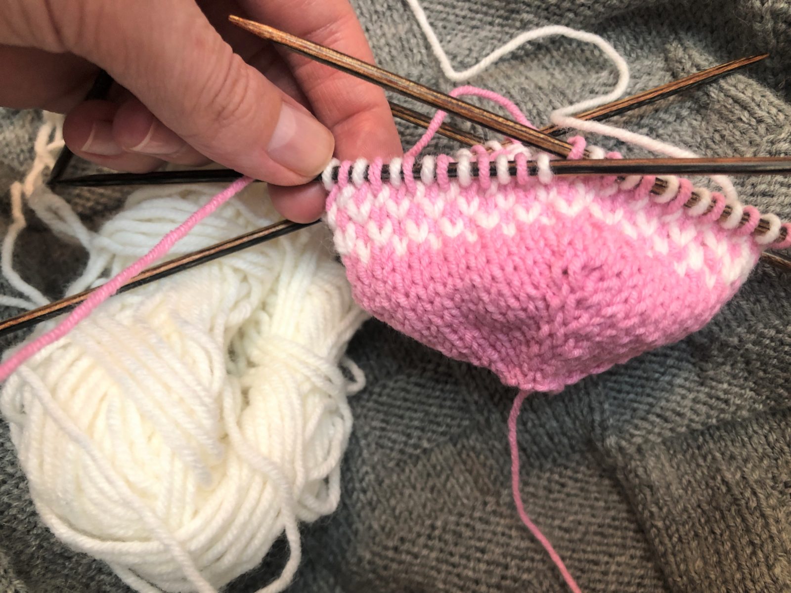 Опять берем белую нитку с открытой петелькой там, где ее оставили.