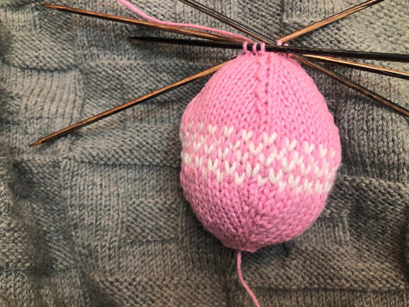Перед тем, как закрыть ряд, вкладываем яичко и убеждаемся, что наша работа соответствует его форме. Если же Вы немного промахнулись с объемами, можно распустить 1-2 рр. и поправить форму.