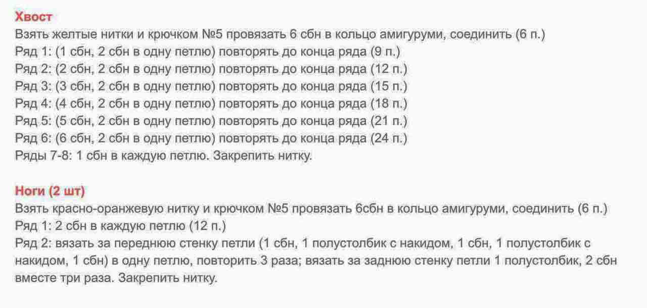 - Ноги пришиваем снизу, чуть ближе к передней части тела, расстояние между ними – 4 петли.