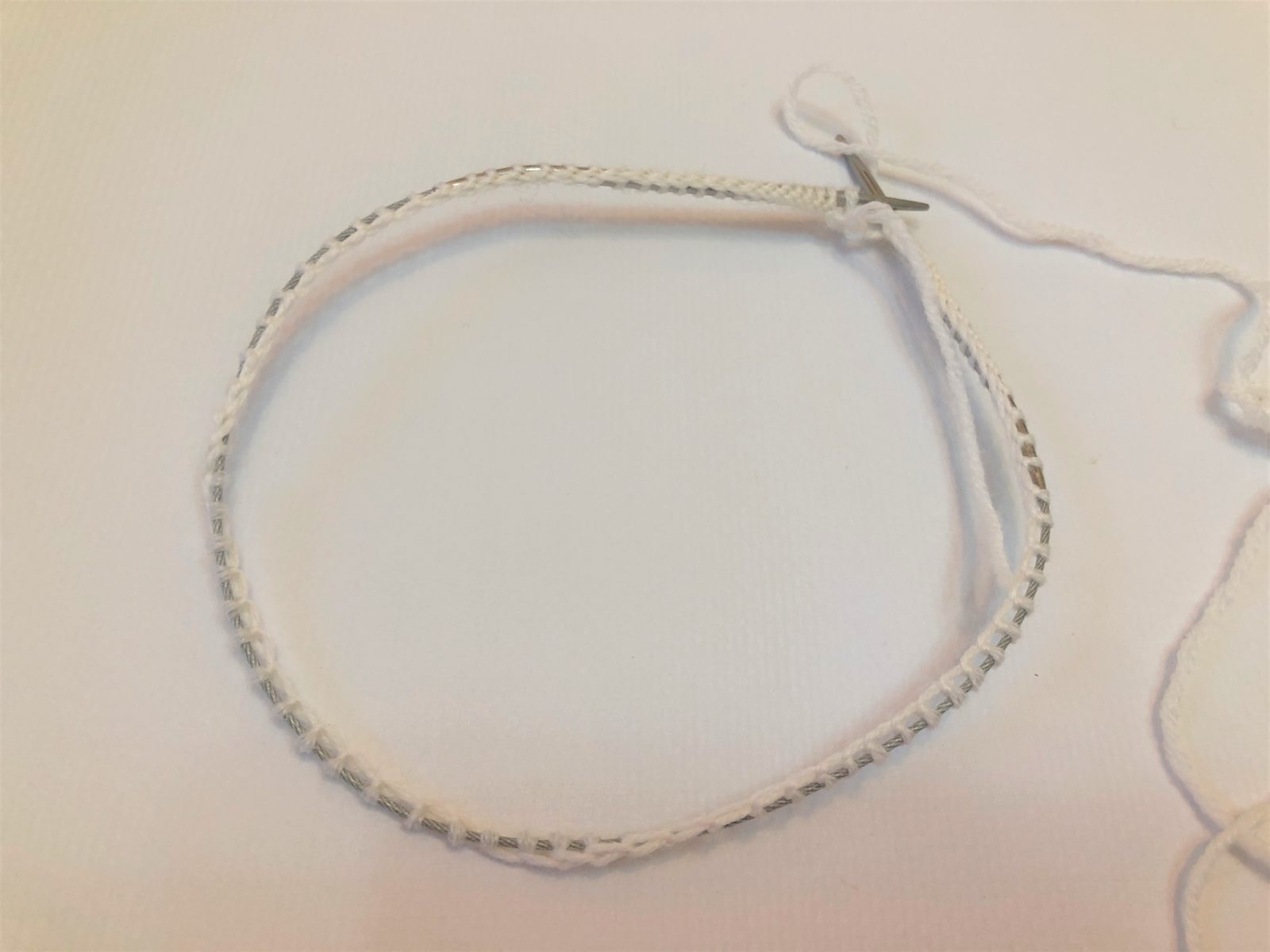 На второй ноге не обрываем нить — соединяем с первой ногой.