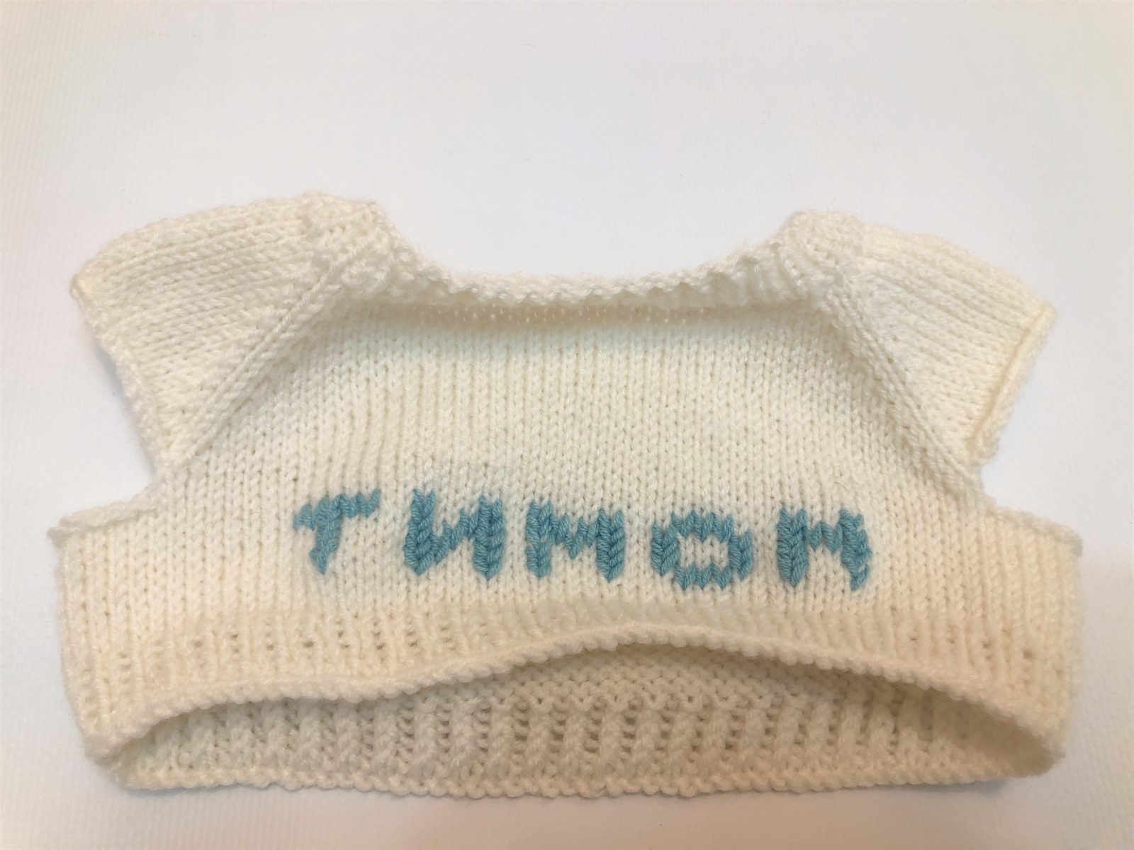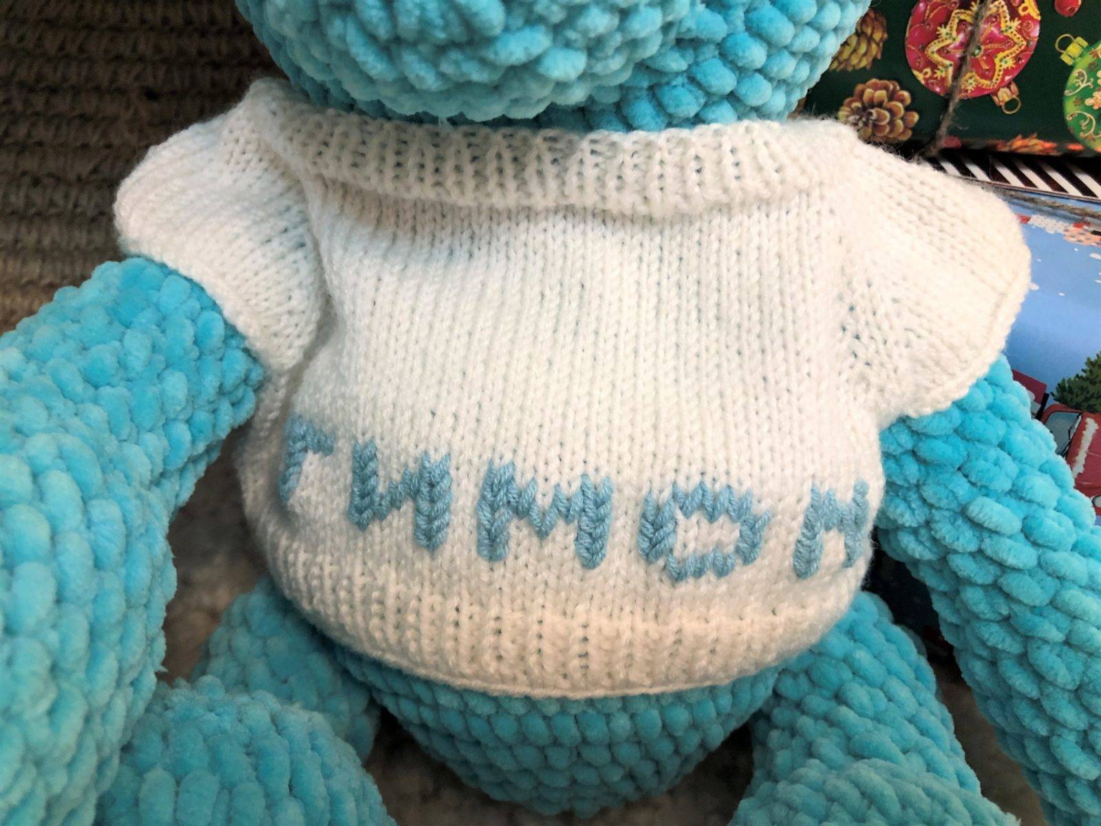 В таком случае личико игрушки лучше вышить самостоятельно, используя для этого нитки мулине. Есть вариант сделать глазки из фетра или связать из пряжи другого цвета.