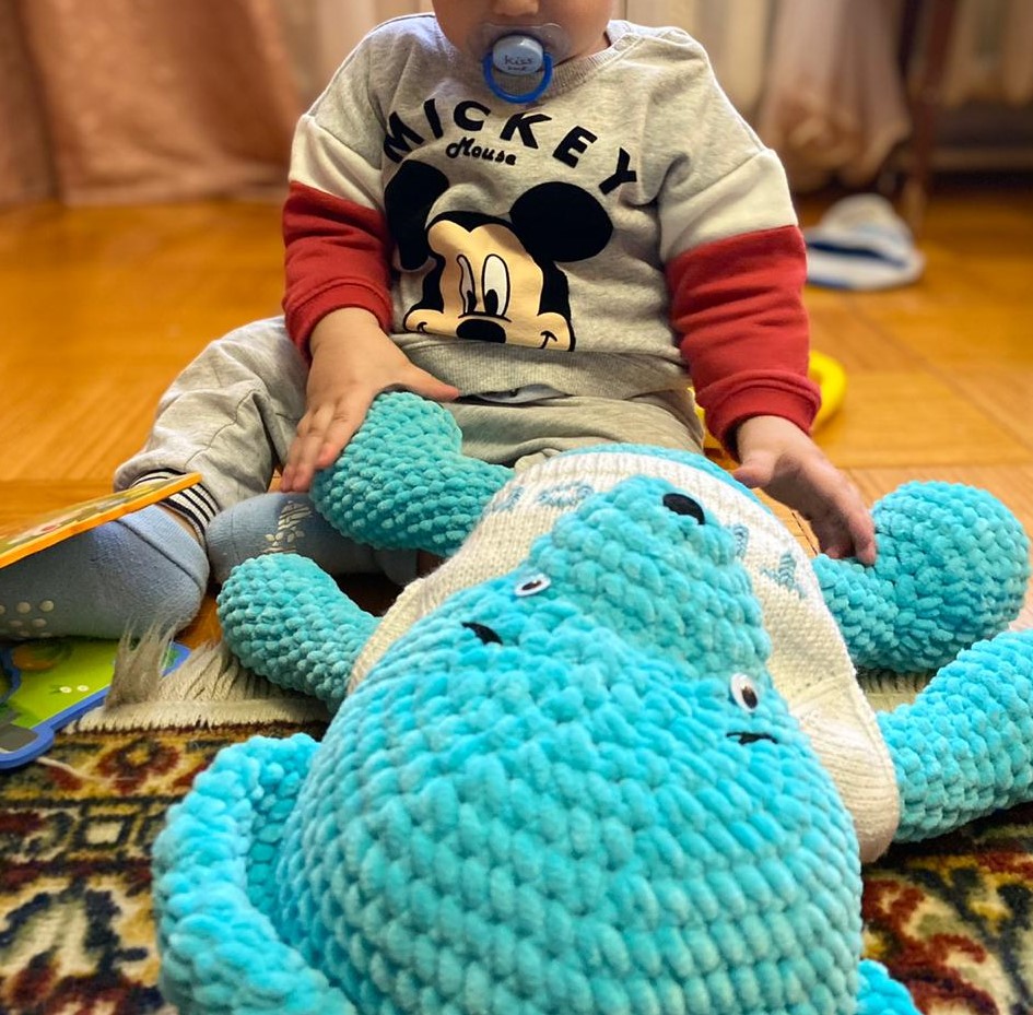 Такое изделие в прямом смысле будет обнимать ребенка и станет отличной игрушкой. Вот самый простой и незамысловатый мк для начинающих рукодельниц: