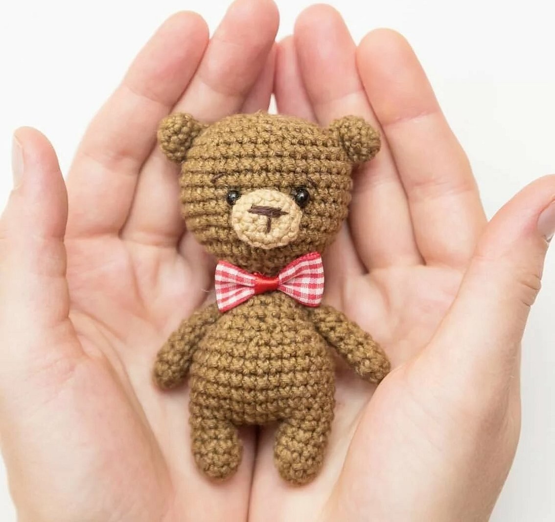 Вязание Мишутки Крошки может стать настоящим испытанием, так как все детали получаются достаточно маленькими. Но все же больше проблем возникает в процессе сборки.