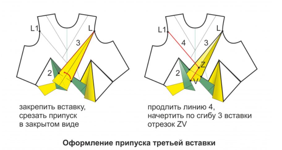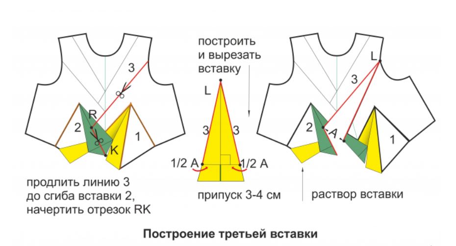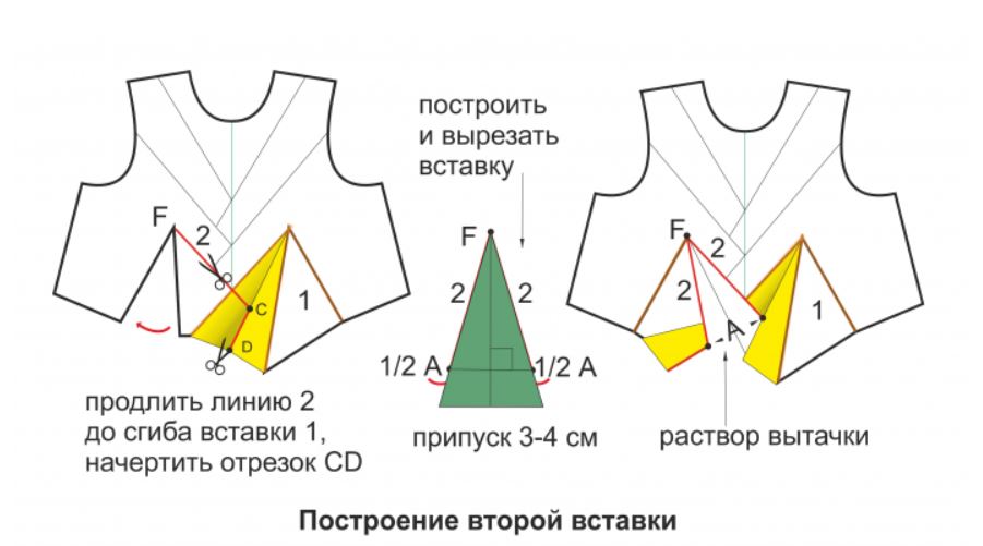 Складываем вставку, срезаем лишнее. По сгибу 1-ой вставки должен быть разрез, равный CD.