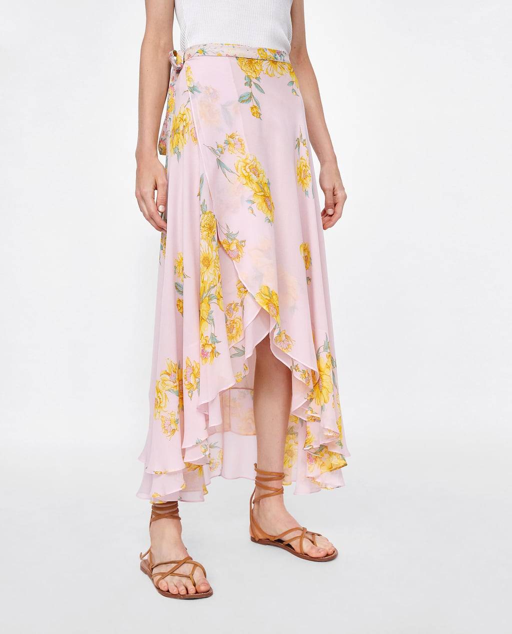 Чтобы добавить образу нарядности, перекрутите свободные углы, расположите узел спереди и протяните его наизнанку. Это, безусловно, выделит талию, что подходит только стройным красавицам – нижняя часть силуэта станет женственнее, мягче.