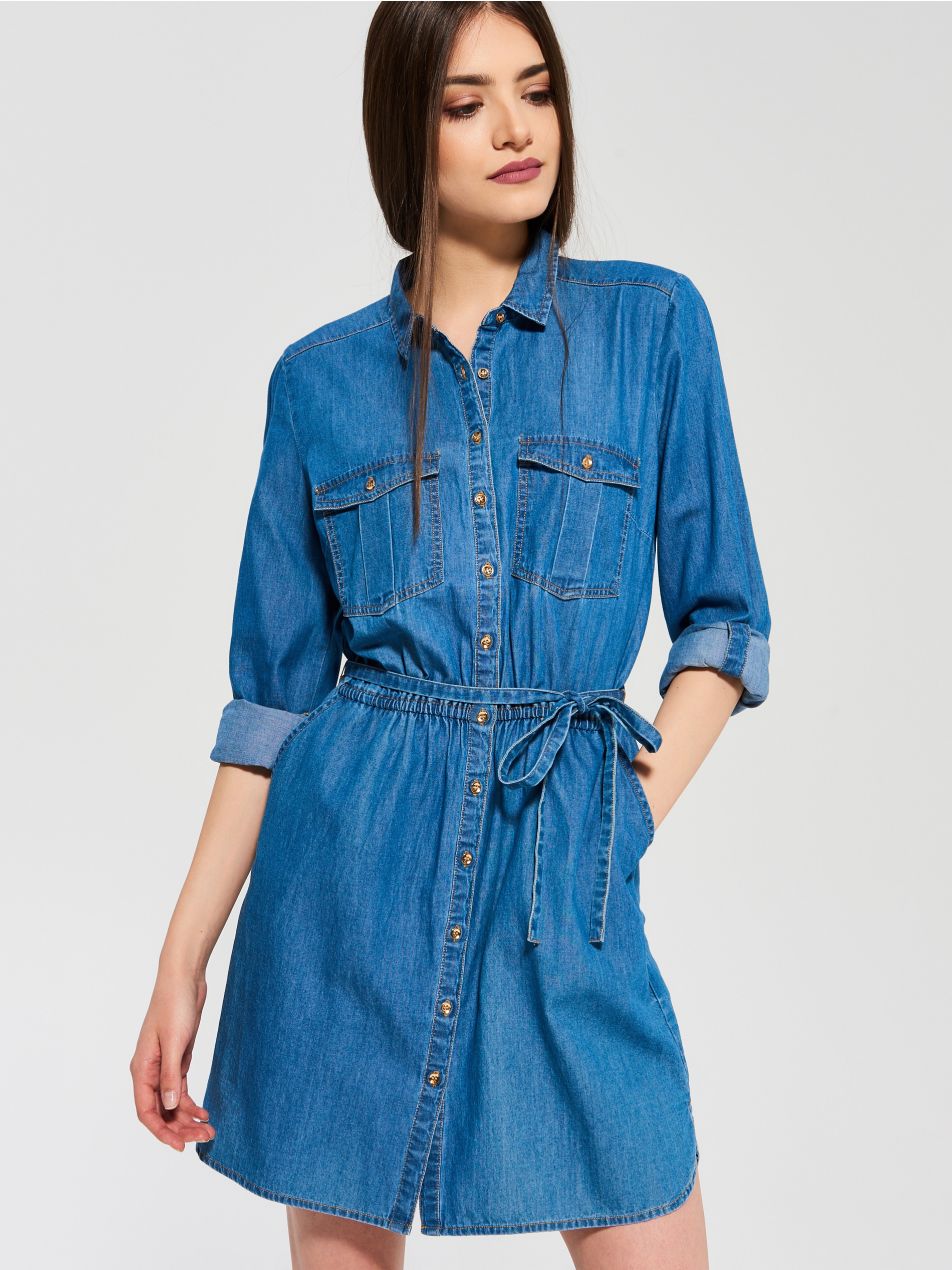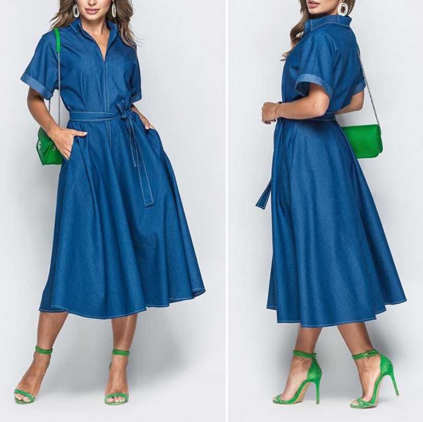 - Если вы предпочитаете более спокойный вид, платье из денима-это идеальная альтернатива. Это также приспособленный стиль, но обычно имеет более высокий вырез, чтобы обеспечить большее покрытие.