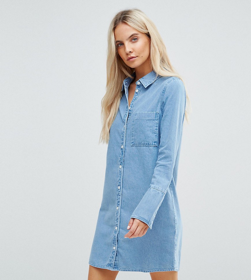 Для более индивидуального, утонченного вида, выберите стиль рубашки джинсового платье. Добавьте пояс, чтобы помочь определить талию, и соедините его с аксессуарами в стиле мужской одежды для одежды, подходящей для школы, случайной рабочей обстановки или выполнения поручений.