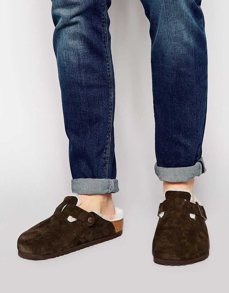 Мужские сабо утеплены овечьей шерстью. При этом они хорошо сочетаются с джинсами