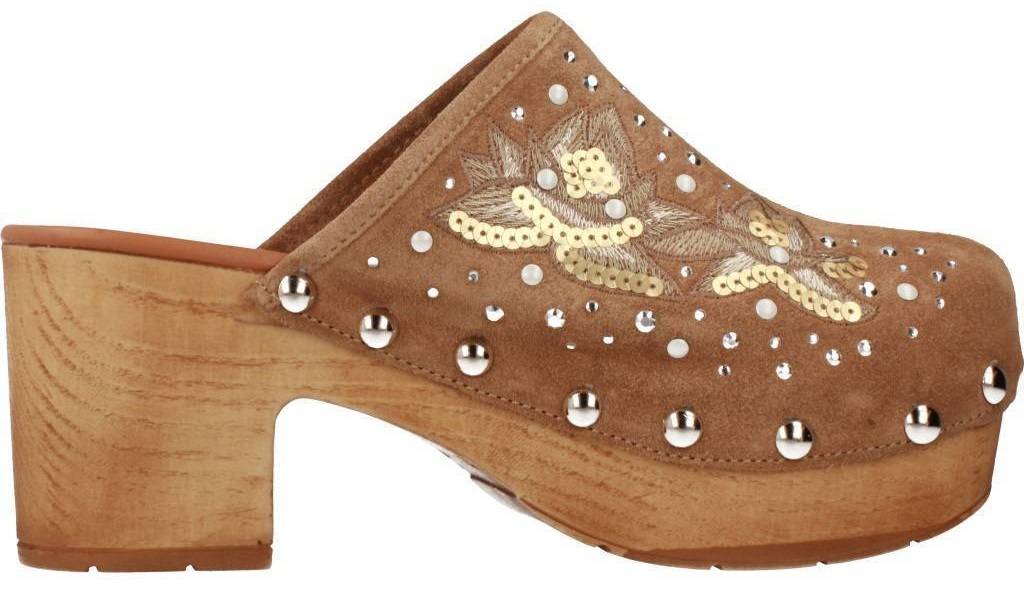 Сабо других цветов тоже представлены в большом разнообразии. Преобладают коричневый, бежевый, синий, желтый, серый. Также присутствуют и комбинированные варианты оттенков. Изделия с текстильным верхом украшаются разными принтами — цветочный, фирменная эмблема, орнамент. Цвет колодки также бывает разным — от белого до черного.