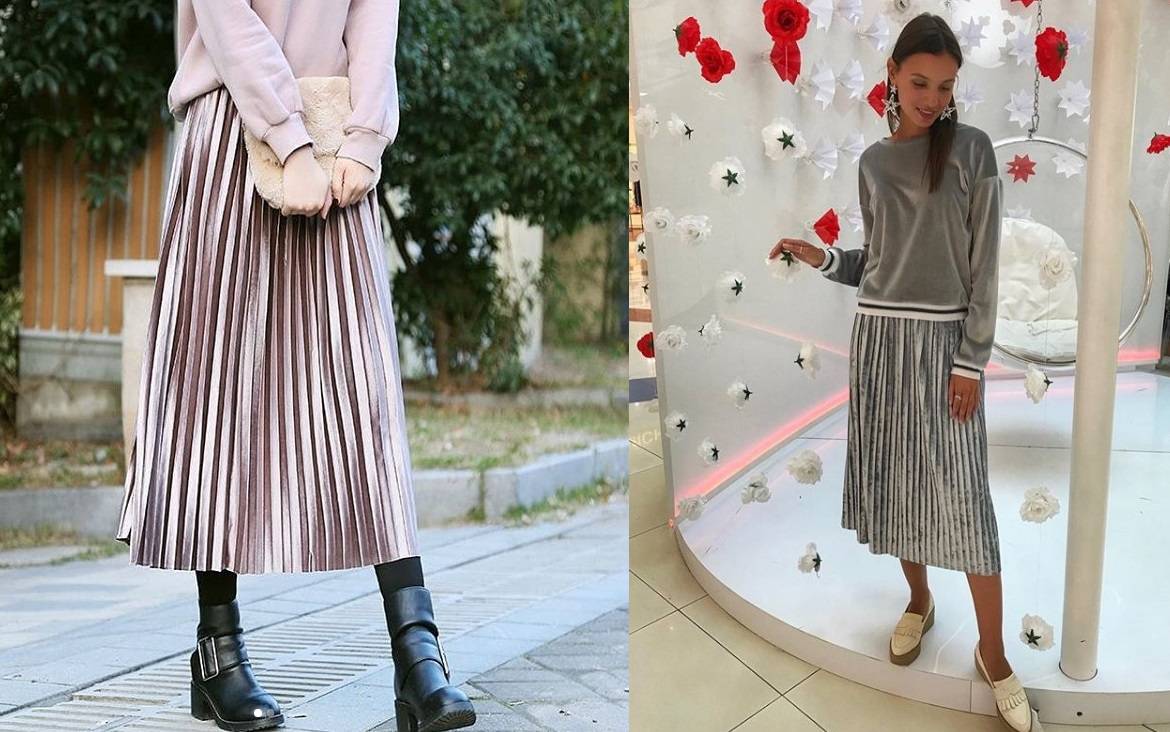 Зимой плиссированную юбку можно комбинировать с ботфортами, высокими или средней длины сапогами, полусапожками. Если вы решили обуть высокие сапоги, то помните, что юбочка-миди должна на 2-3 сантиметра прикрывать верх их голенища. Ботфорты подойдут к короткой юбке
