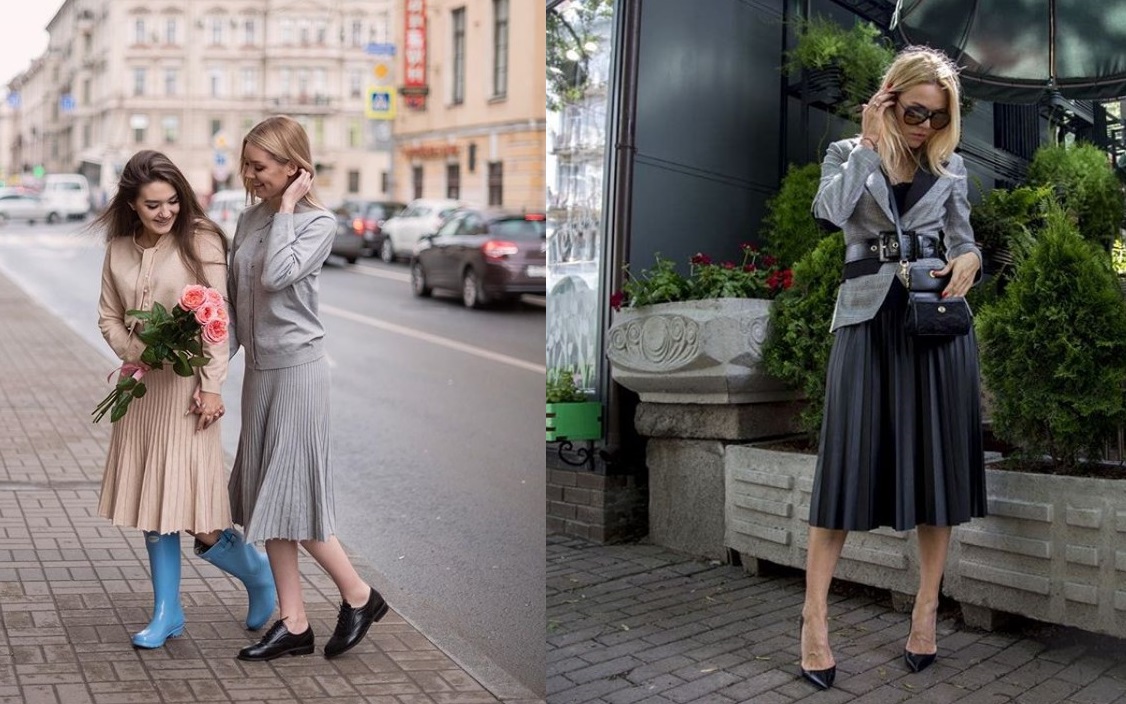 Наиболее частый вопрос, возникающий у девушек, обновляющих свой сезонный гардерооб — с какой обувью носить юбку плиссе. Ответ на эту дилемму зависит от того, какой стиль для своего образа вы выберете. Для офисно-делового ансамбля подойдут туфли-лодочки, для пляжного выхода — шлепанцы, для стиля спорт-шик — кроссовки, для романтического — босоножки, для повседневного — слипоны или балетки, для уличного (городского) — кеды или лоферы.
