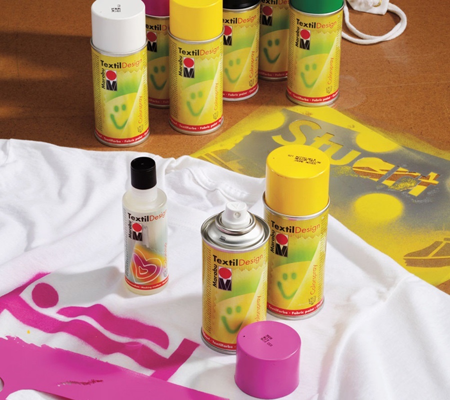 Эта аэрозольная акриловая краска поставляется в баллончиках по 220 мм. Цвета в линейке разные, в том числе и светящиеся в темноте расцветки. Применяется для восстановления тона, окрашивания и декорирования тканевых изделий в домашних условиях. Цвета между собой можно смешивать, исходя из многочисленных отзывов в сети. Подходит как для натуральных, так и смешанных составов, в которых не больше 20% искусственных волокон. Цвета не выстирываются и не выгорают на солнце. Люминесцентный баллончик лимонного окраса позволяет сделать необычные рисунки, которые будут светиться в темноте.