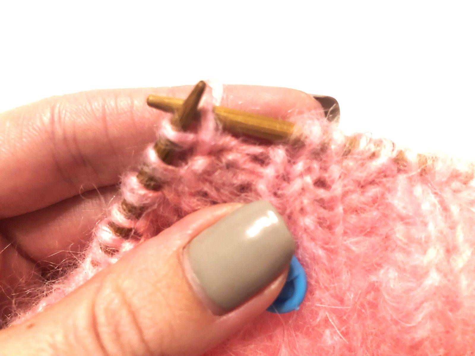 - 11, 12 ряды – провязывайте изнаночную петлю вместе с лицевой.