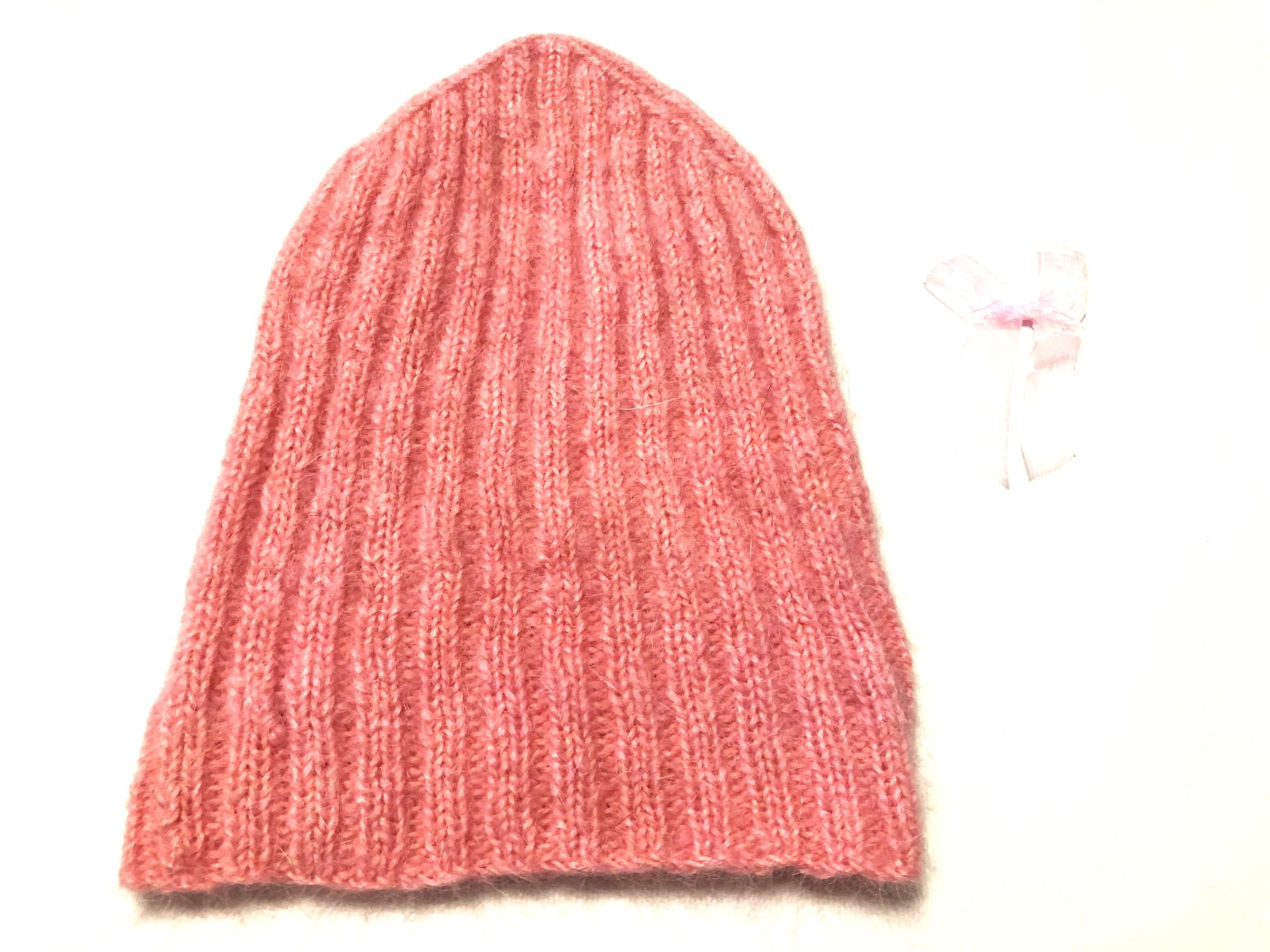Шапка «бини», связанная платочным узором