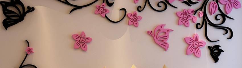 Многоцветные трафареты выполнены в разных оттенках дополняющих друг друга. Обратные имеют противоположный принцип, что в обычных трафаретах вырезается в этих остается и крепится на стену.