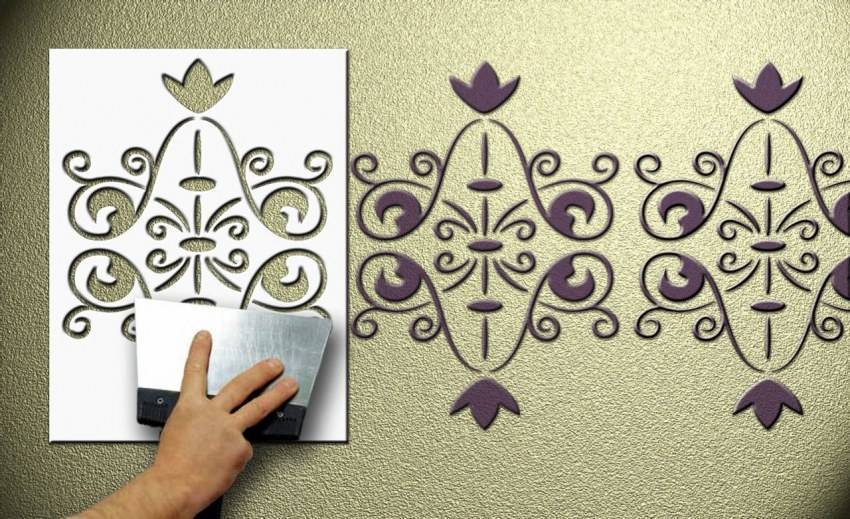 Объемные рисунки наносятся с помощью шпаклевок и с помощью специальных трафаретов из плотных материалов.