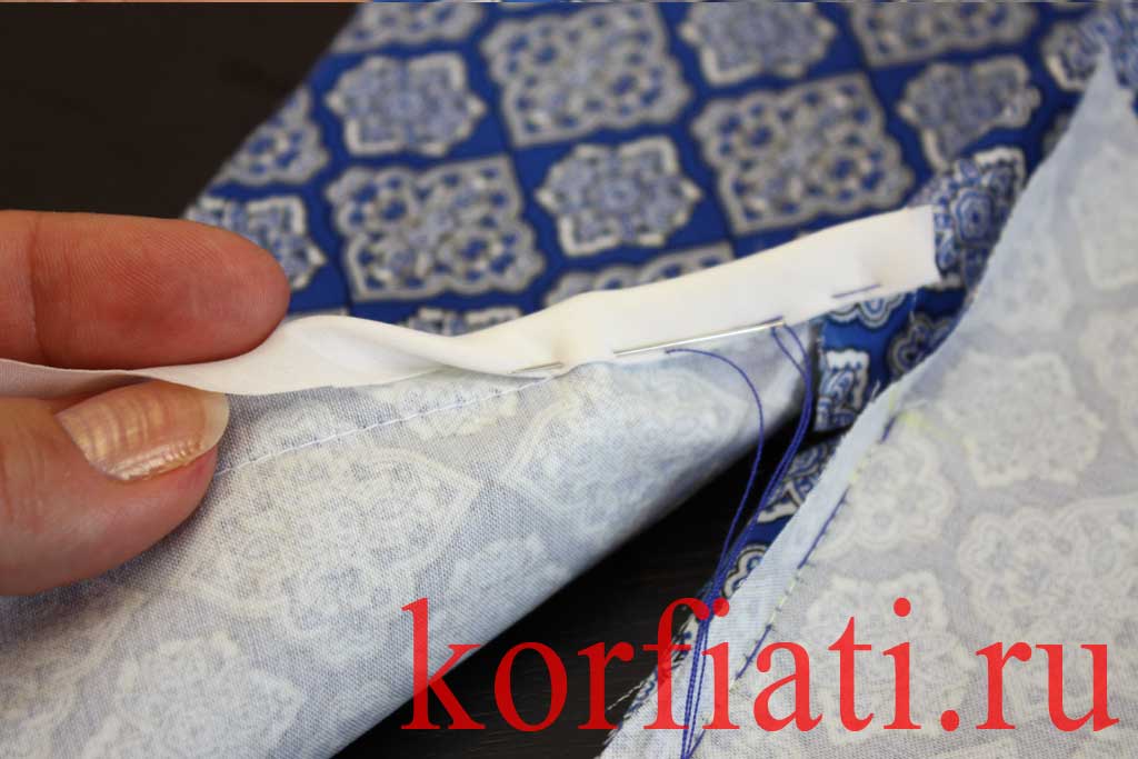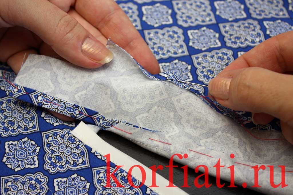 С изнаночной стороны верхний край обтачки заправьте под подогнутый припуск (рис. 10).
