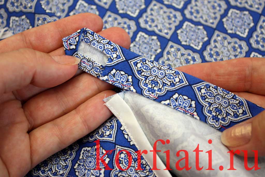 Косую обтачку подогните до ширины 0,5 см и приметайте (рис. 5).