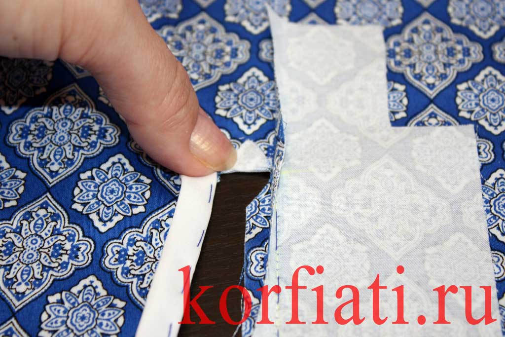 Край фигурной планки подверните вдоль припуска и приметайте по краю подгиба (рис. 8).