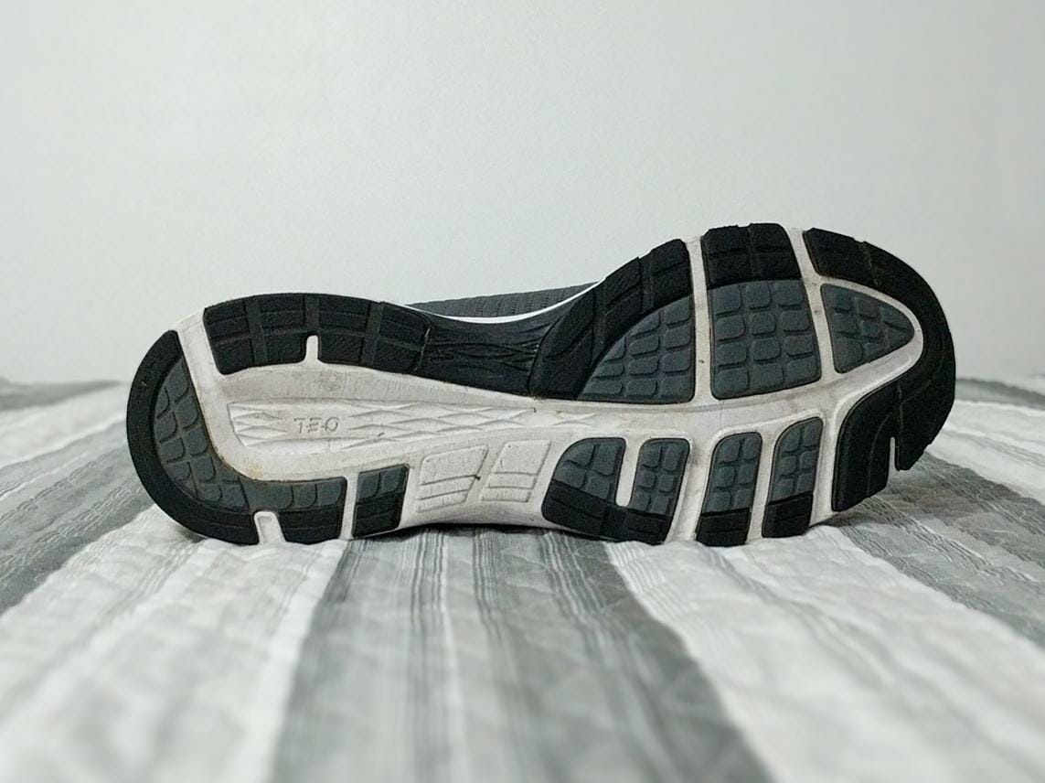 Наконец, слой протектора подошвы, имеет стандартное для Asics расположение нескольких резиновых площадок по всей длине с тонким каналом и большой площадкой из вспененного материала под пяткой и серединой стопы.