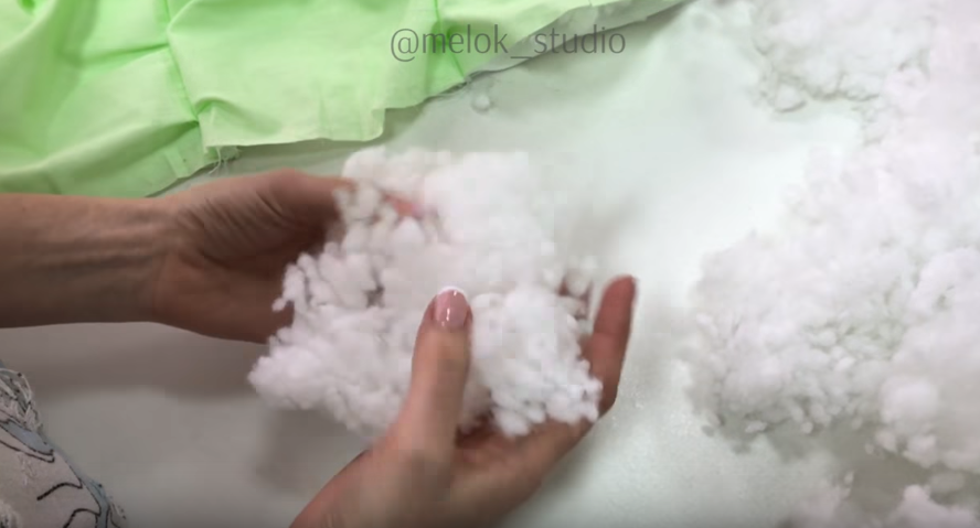 - В качестве наполнителя для подушек можно пользоваться холлофайбером или синтепоном. Набивать изделия ватой крайне нежелательно потому, что такой материал сбивается после первой же стирки, внешний вид изделия будет утрачен;