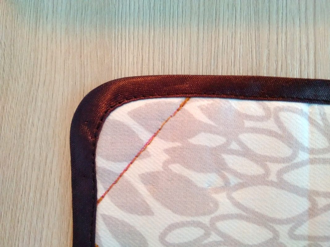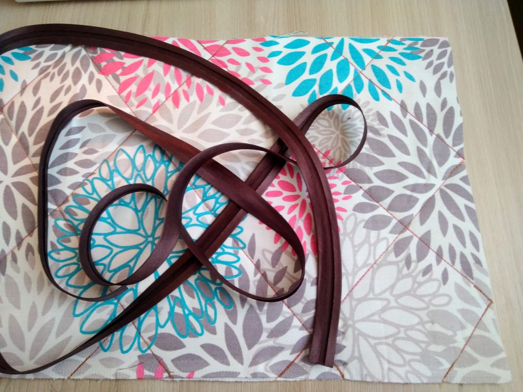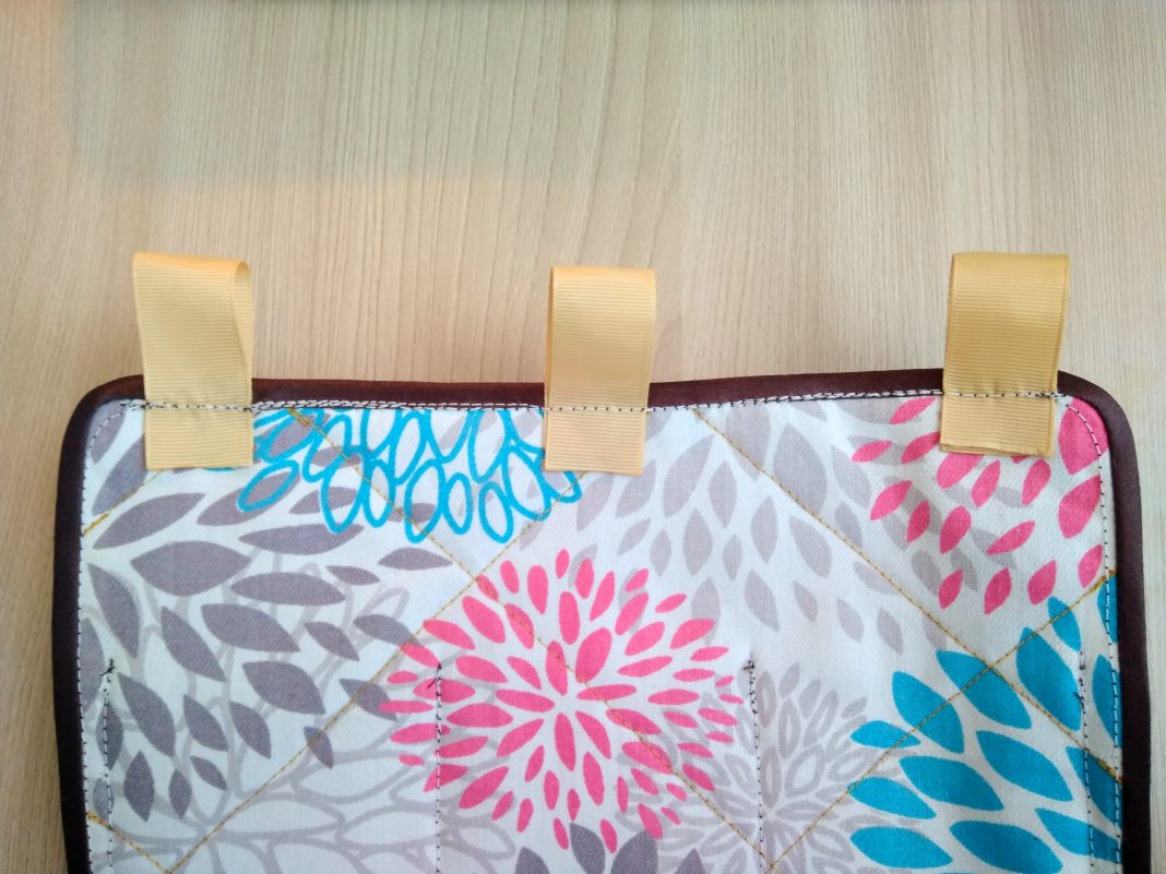 - По краям каждой тканевой формы прострочите обивочную ленту. Это придаст органайзеру дополнительную прочность и эстетический вид.