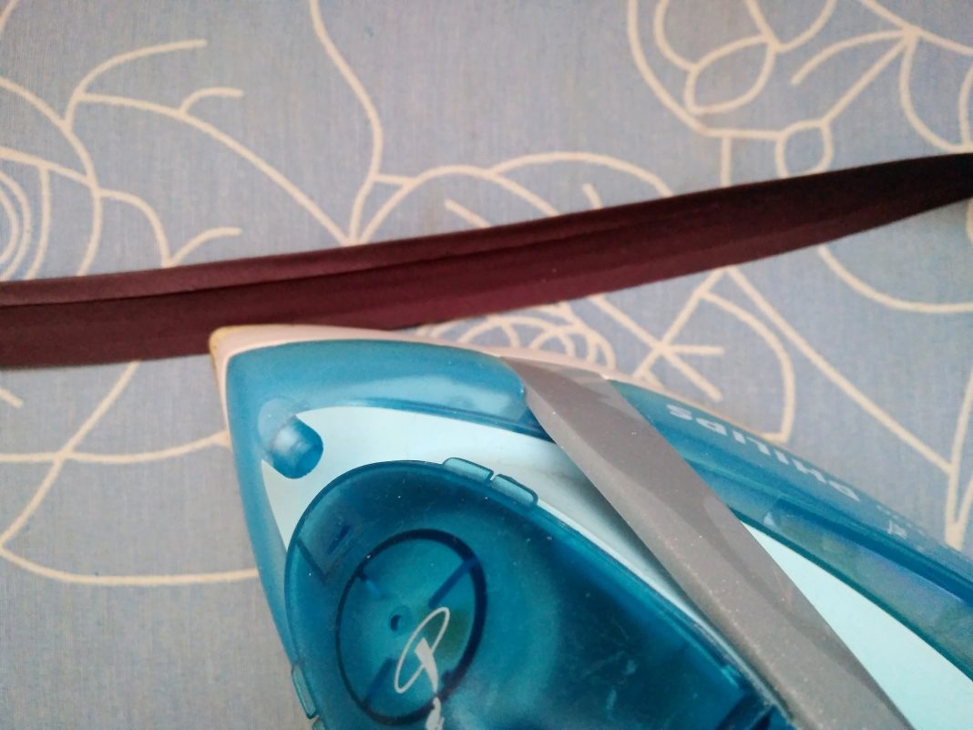 6. Беру косую бейку, разглаживаю один её край утюгом.