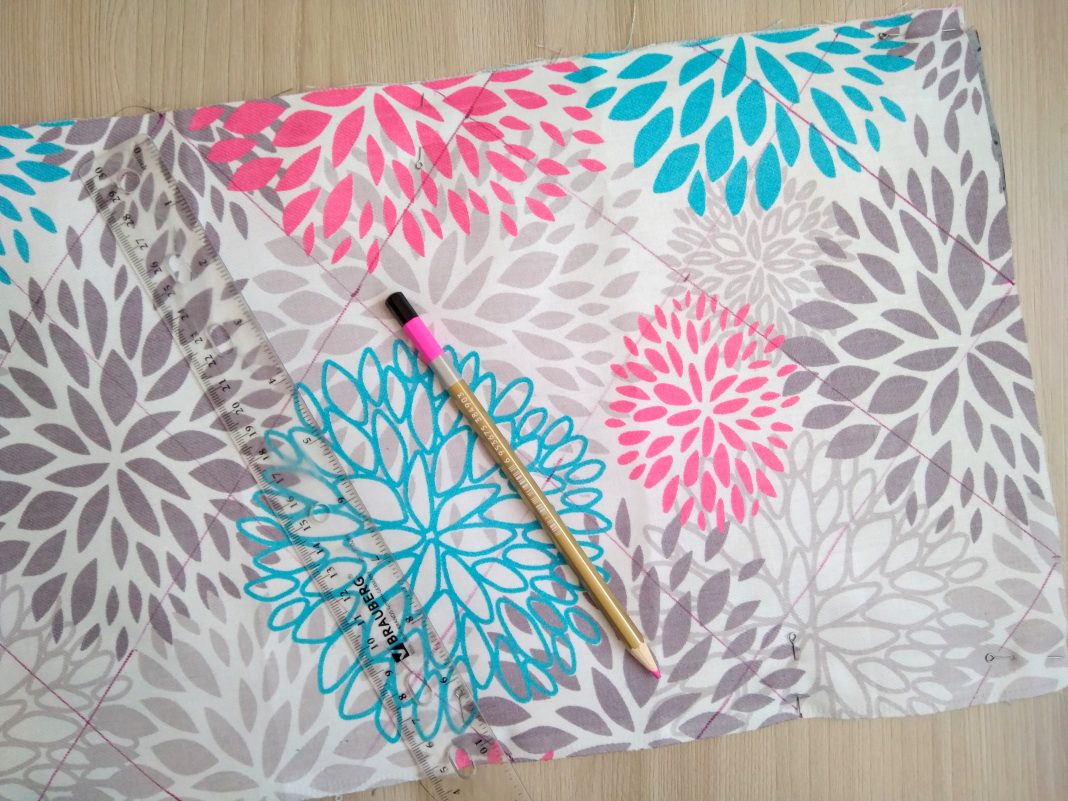 4. Скрепляю все три ткани между собой булавками. Теперь нужно их простегать. Рисую маркером (карандашом) рисунок для простегивания.