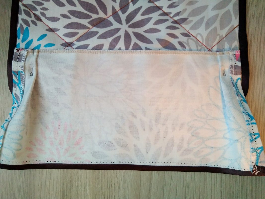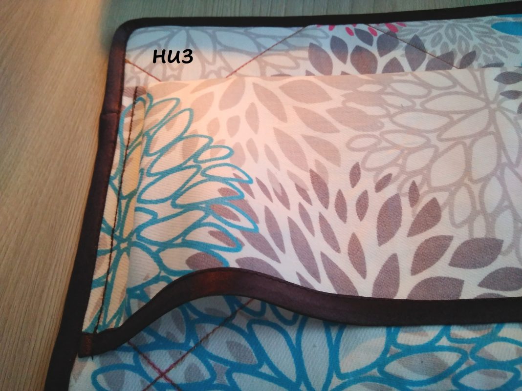 Сложите ткань с лентой внутри и аккуратно на швейной машине пришейте к карману. Выбирайте высоту, которая удобна и подойдет для хранения остальных предметов.