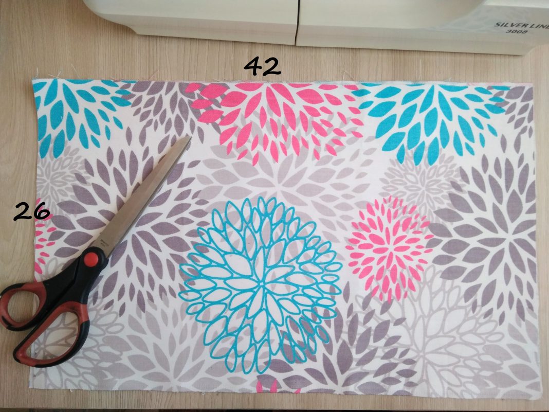 - Возьмите ткань и отрежьте две прямоугольных формы одинакового размера. Определите размер органайзера, исходя от количества инструментов, которые планируете разместить в нем.