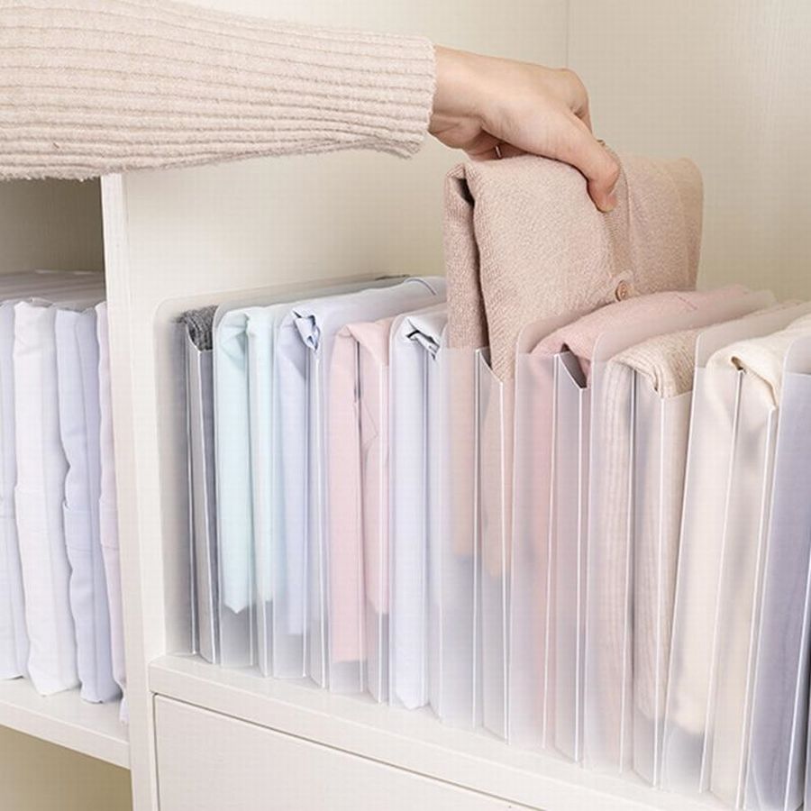 Еще один вариант органайзера для одежды в виде горизонтальных вкладышей. Удобно и выглядит круто.