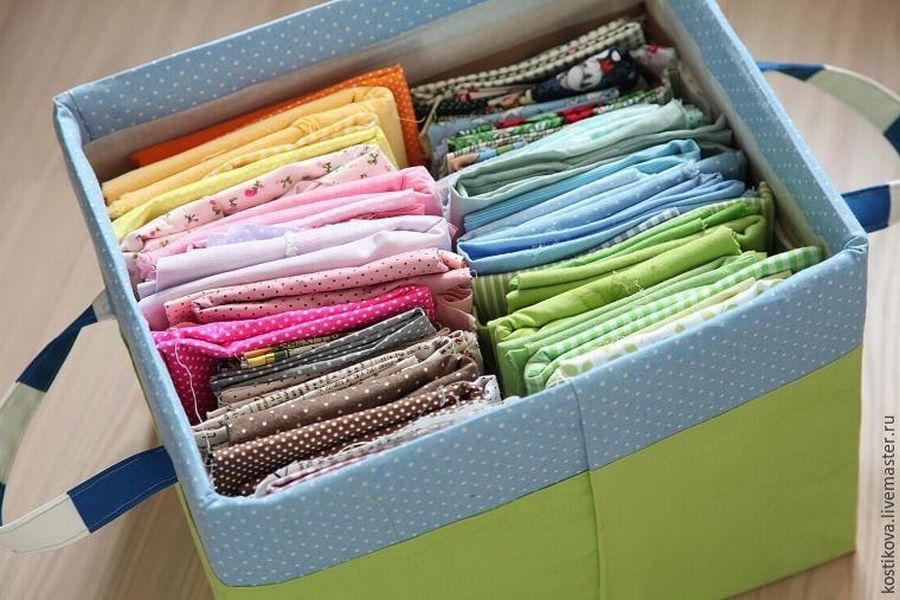 Применять можно для белья, полотенец, постельного или для грязной одежды в качестве бельевой корзины. При вклейке ткани к картону лучше использовать силиконовый клей или пистолет. Он пластичный, хорошо соединяет материалы и не раскисает при повышенной влажности (в отличие от клея ПВА, например).
