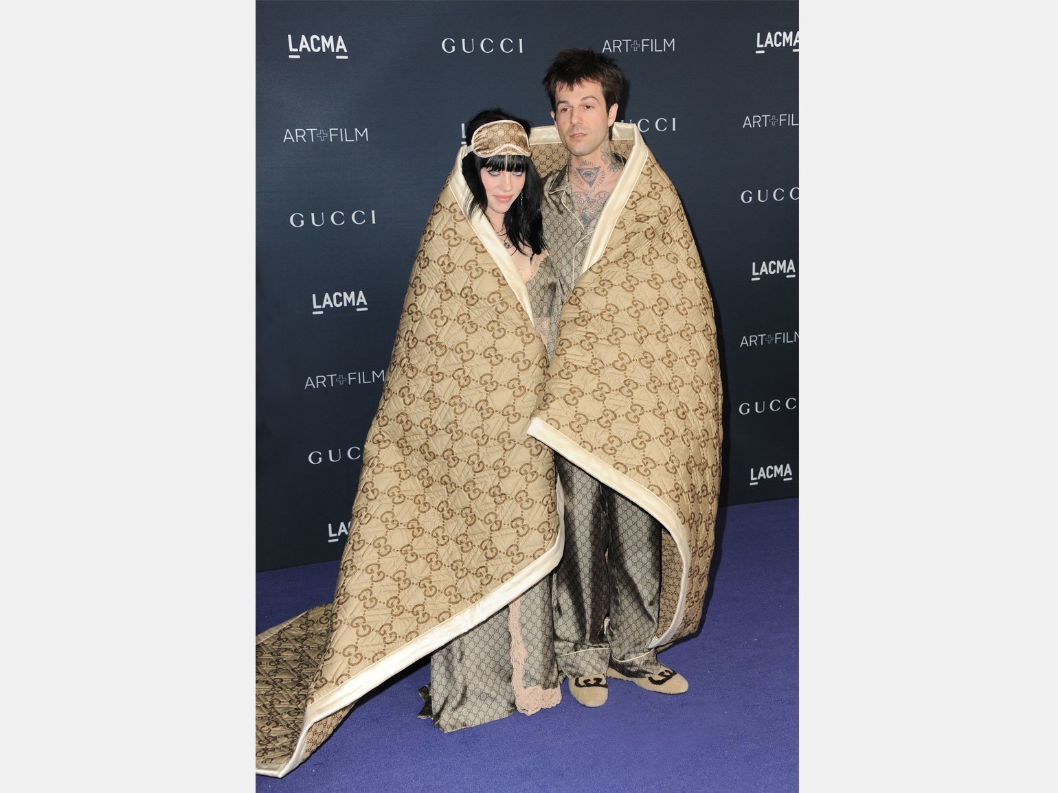 Паттерн GG Canvas на комплекте для спальни: покрывале, пижаме и домашней обувиФото: Tinseltown / Shutterstock