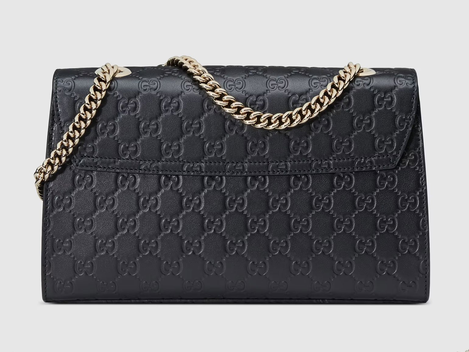 Первым фирменным паттерном модного дома считается ромбовидный Gucci Diamante (с итал. «бриллиант Гуччи»), появившийся ещё в середине 1930-х годов. Его использовали только для сумок, и за почти столетие он не изменил своего предназначения: сумки с Gucci Diamante отсылают к ретро и классике.