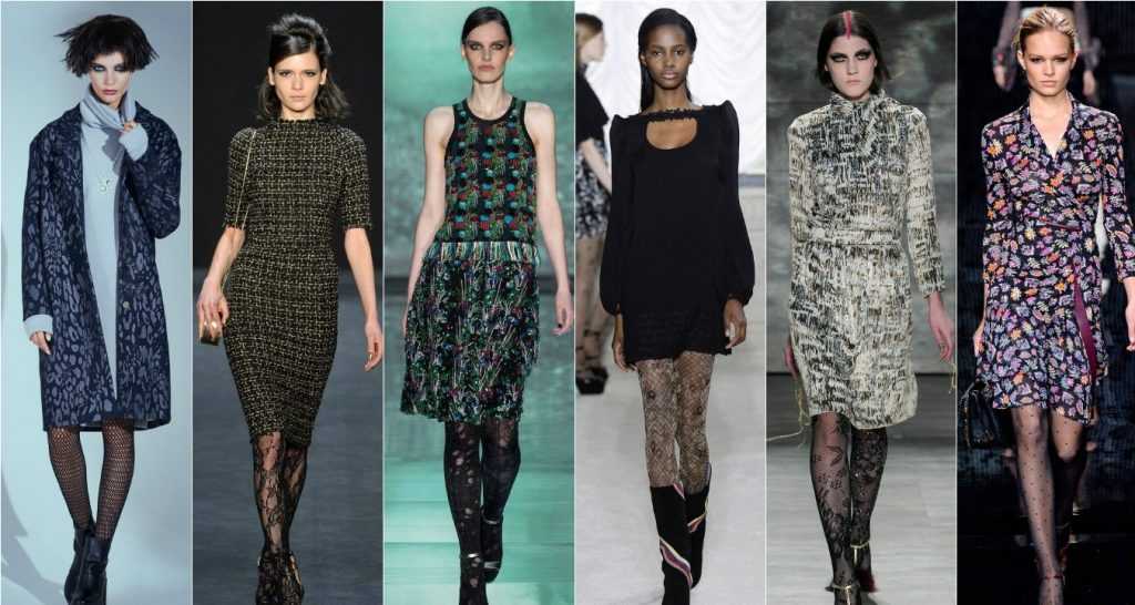Если же девушке все-таки хочется надеть колготы с орнаментом или рисунком, их лучше всего сочетать с однотонными предметами гардероба. В противном случае лук получиться безвкусным.