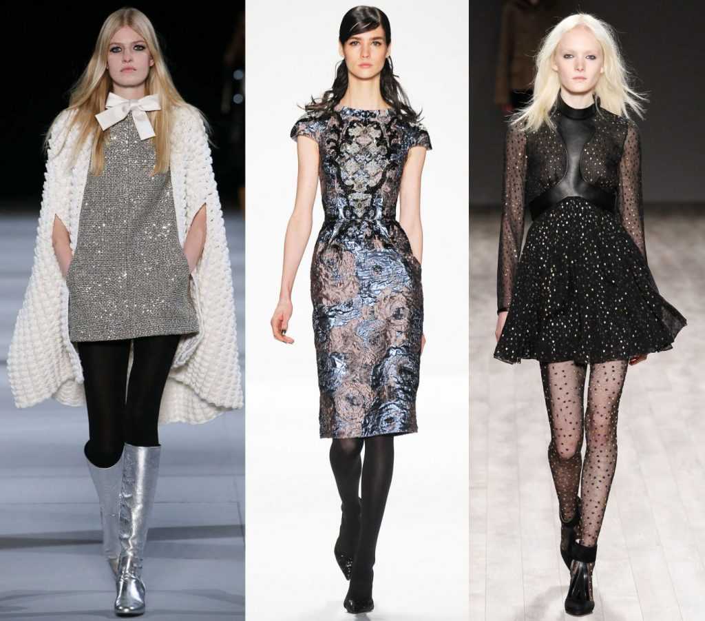 Избегайте блестящих колготок, если, конечно, не собираетесь подражать сценическим образам Rhianna. Небольшой блеск, как, например, у шёлковых чулок, может быть допустимым, но для перестраховки лучше выбирать матовые экземпляры.