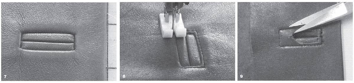 Особое внимание уделите прочности концов строчек, так как если они будут плохо закреплены, карман не получится. В завершение проверки, посмотрите на изделие с изнанки и ещё раз проверьте параллельность и длину строчек (рис