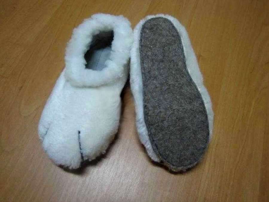 Детские тапочки теплые, из флиса, на меху, в качестве подошвы кожа и утеплитель от старых сапог.