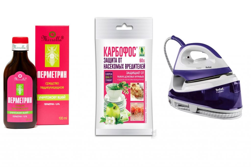 Для замачивания одежды и постельного белья можно использовать скипидар, эмульсию карбофоса, уксус и дустовый порошок. Однако следует помнить, что эти средства убивают только взрослых особей. Для уничтожения личинок необходима дальнейшая обработка температурой.