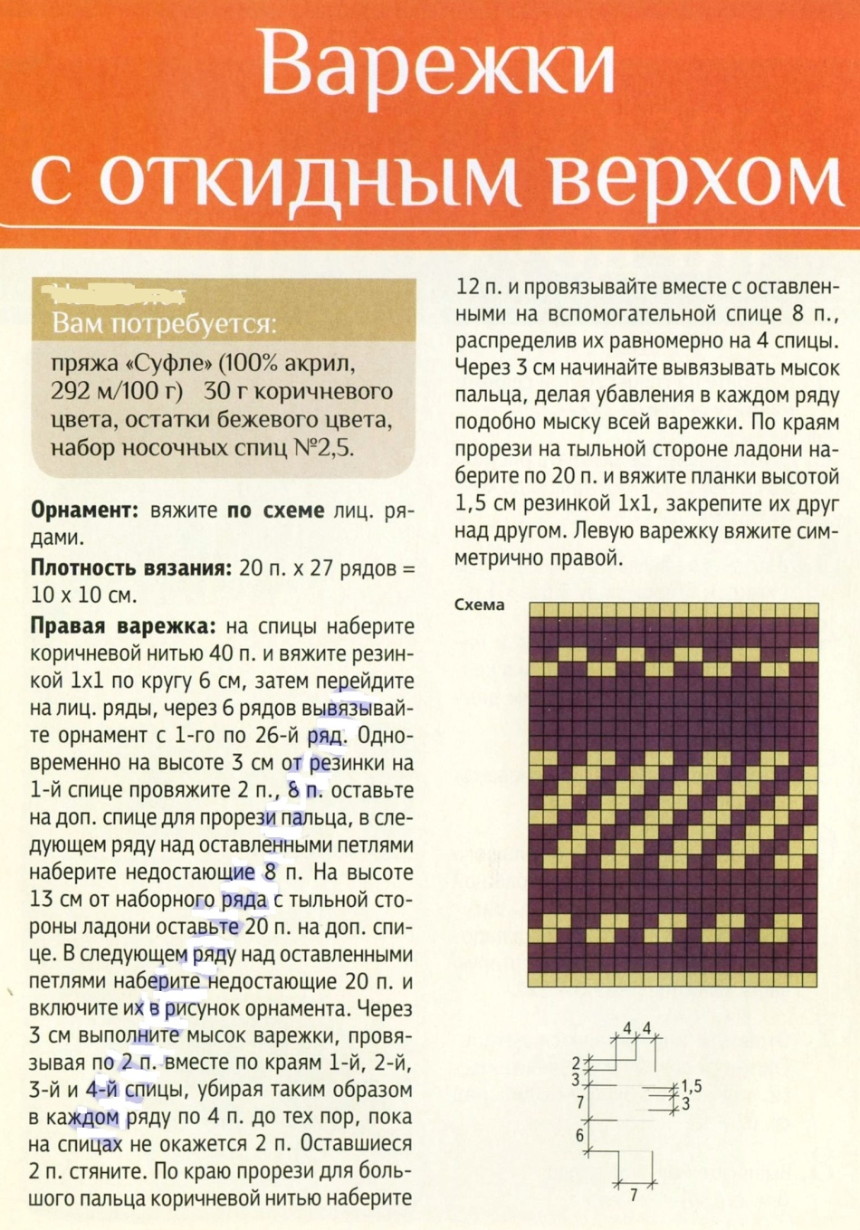 Варежки с откидным верхом крючком и спицами с описанием и видео