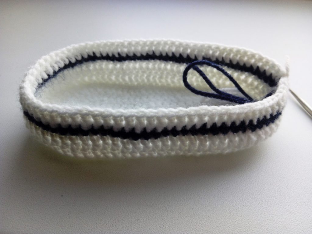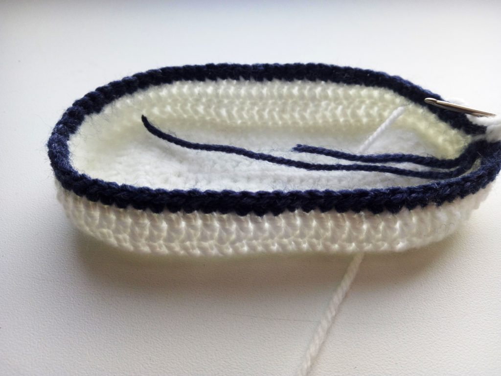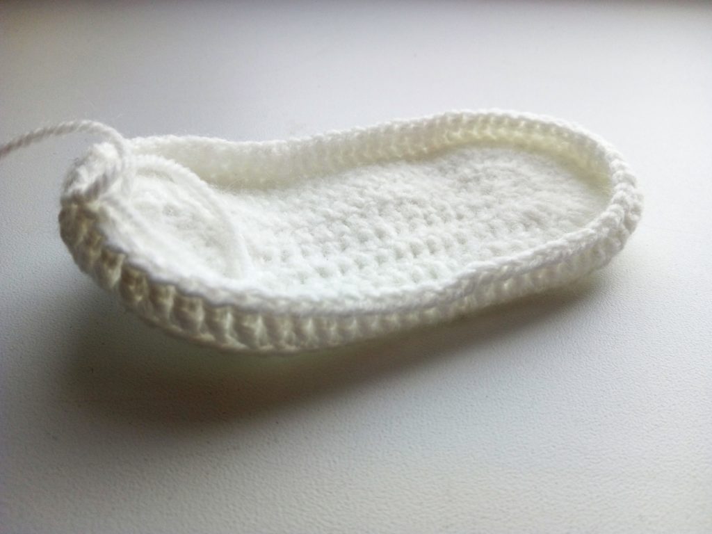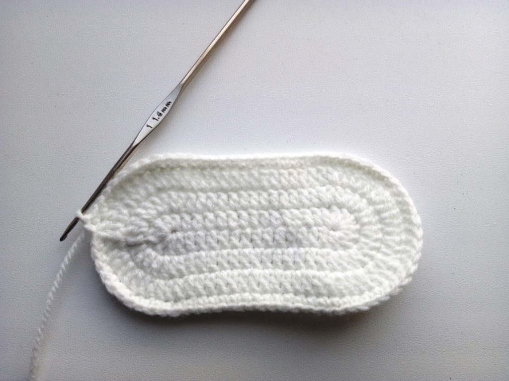 - При достижении нужной длины подошвы закончите работу, аккуратно завязав концы пряжи и обрезав лишнее.